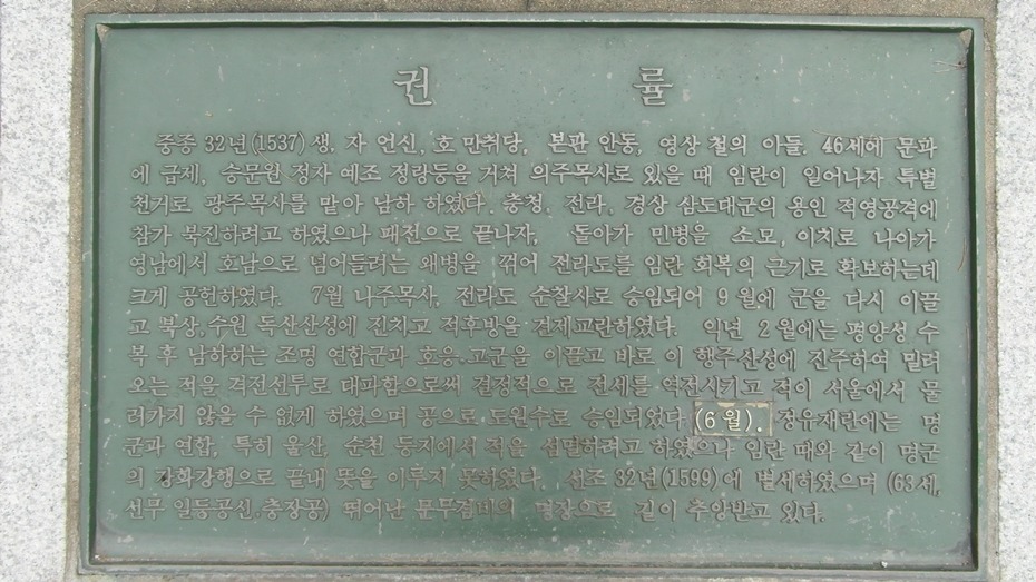 임진왜란 3대첩 중 한 곳으로 연약한 부녀자들까지도 앞치마에 돌을 날라 석전을 독려하여