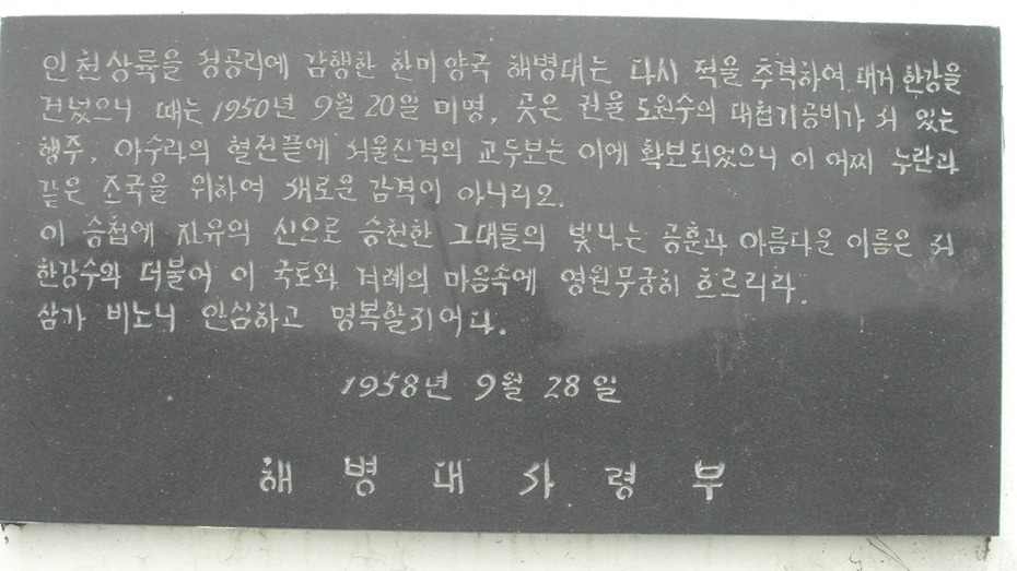 행주산성 입구에 있는 해병대 행주도강 전첩비