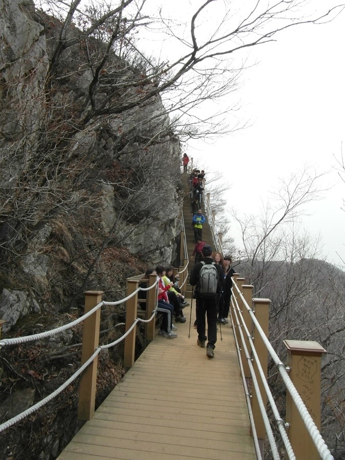 슬기봉 아래 암봉지대를 나무데크를 이용하여 통과한다.
