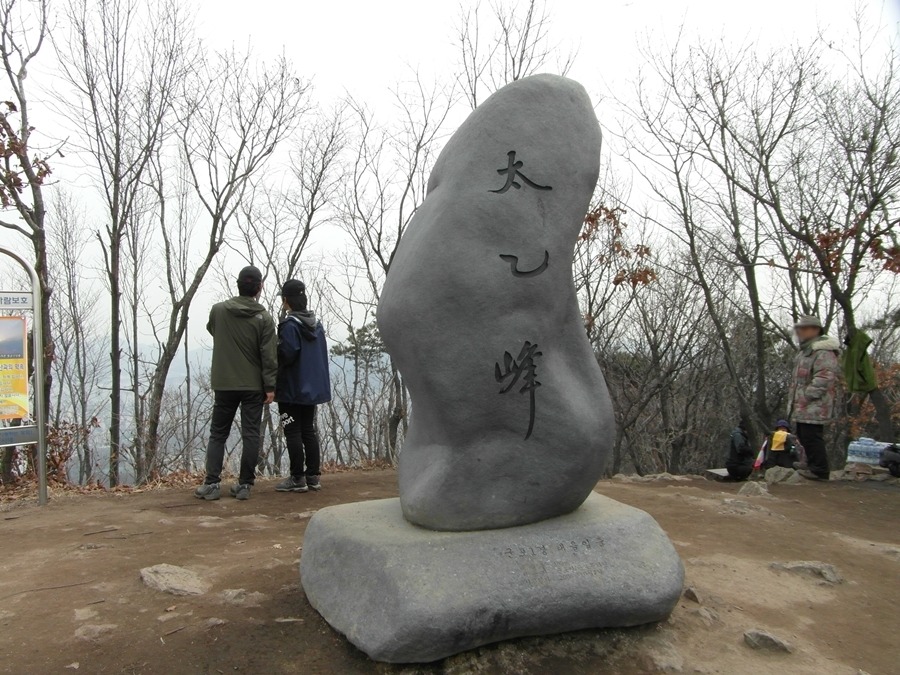 정상인 태을봉을 찍었으니 약 1/3 지점인 셈이다. 표지석 아래 기단엔 태을봉에서 보는 일출이 군포 제1경이란다.