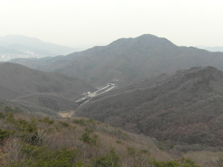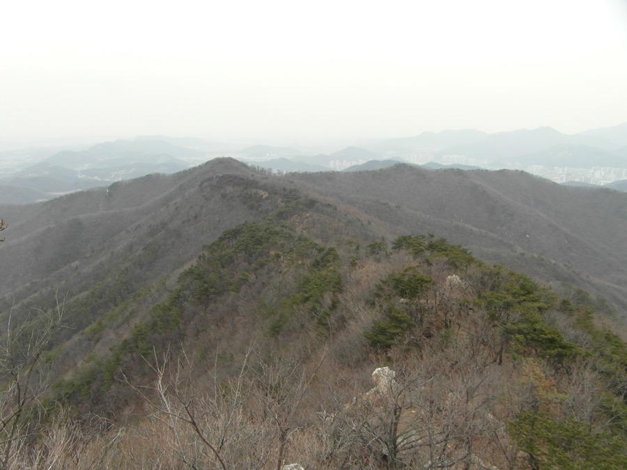 멀리 관악산과 삼성산이 잡히지만 날씨가 선명하지 못 해 조망이 좋지 않다.