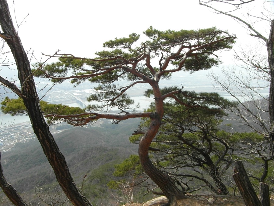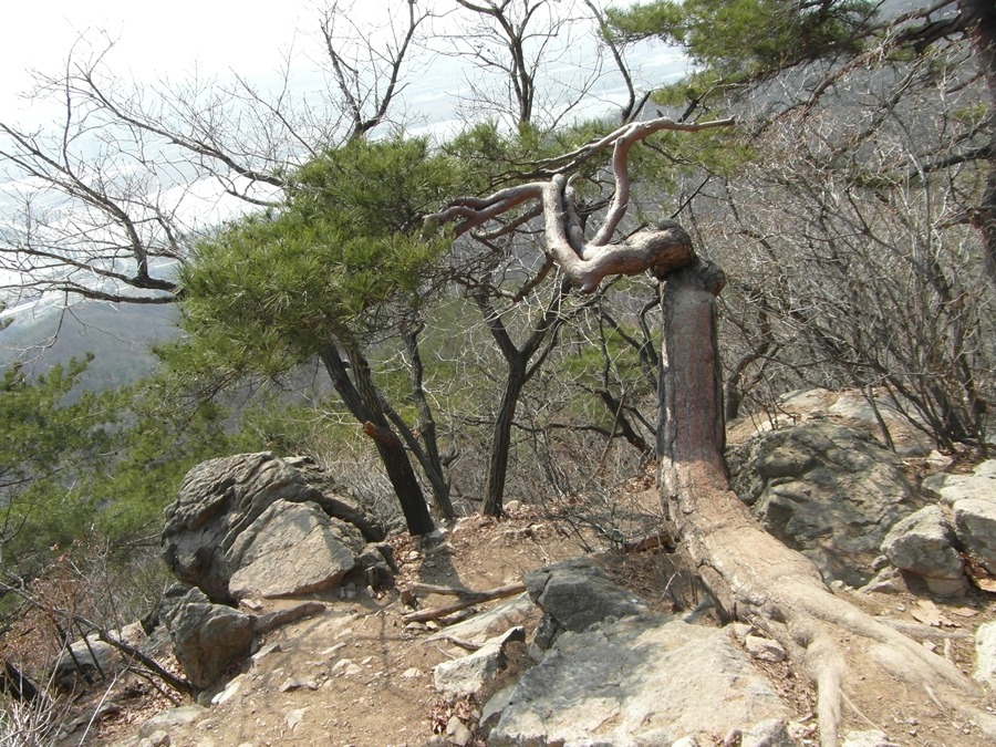 특이한 소나무라 나무를 밟고 올라서서 사진을 찍었는지 나무 밑둥지가 발자국으로 가지가 다 까져 맨살이 드러났다.