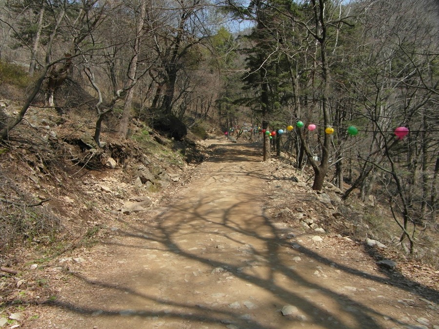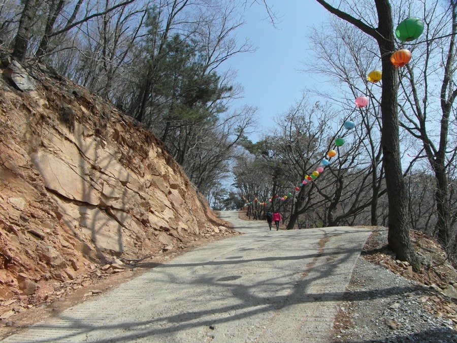 일주문부터 비포장도로가 시작되니 비로소 발의 피로감이 줄어든다. 사찰 가는 길엔 대부분 도로가 포장되어 있어