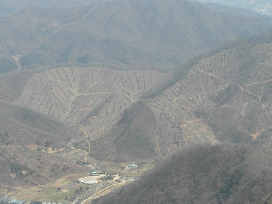 건너편 산은 벌목을 하여 까까머리 산 모양이다.