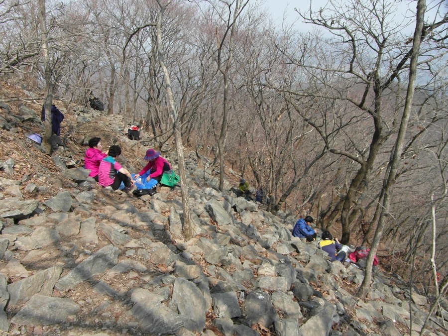 예봉산 아래 햇볕 좋은 곳에서 옹기종기 자리잡고 식사하는 산객들