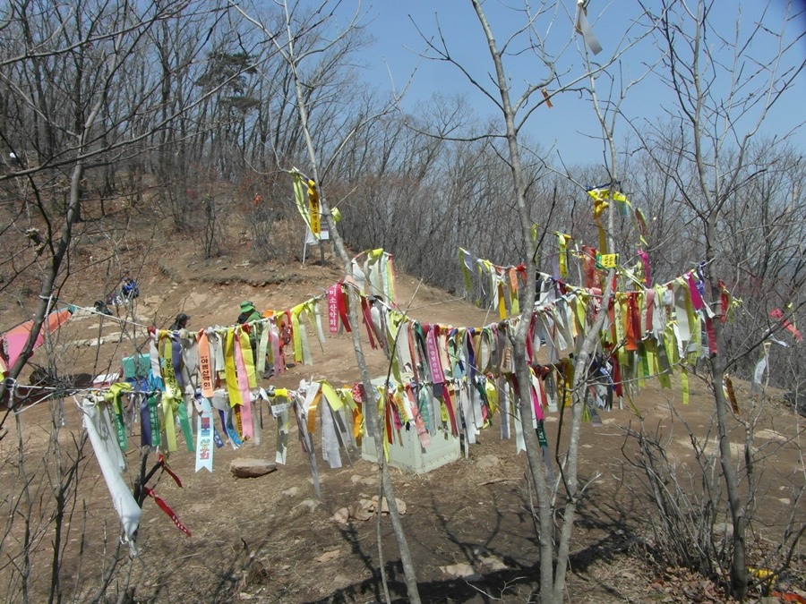 헬기장 입구엔 전국산악회의 시그널이 한자리 잡겠다고 아우성이다.