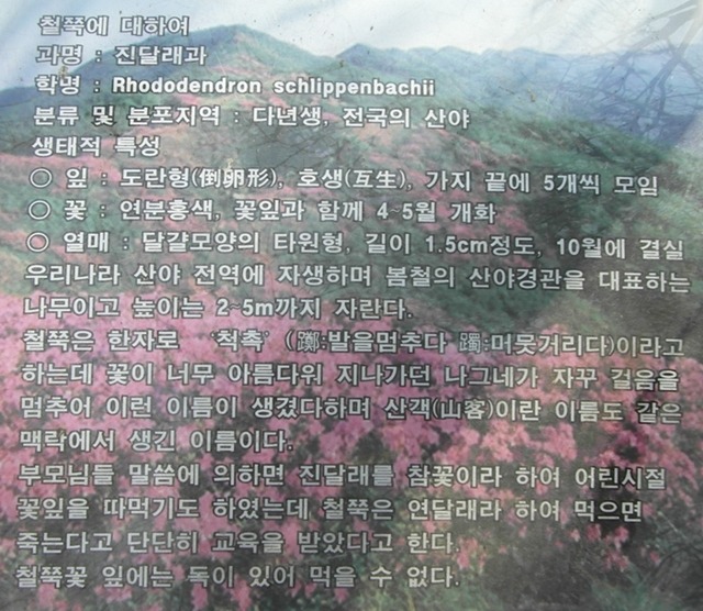진달래는 참꽃이라 하고, 철쭉은 연달래라 한다는 말씀.