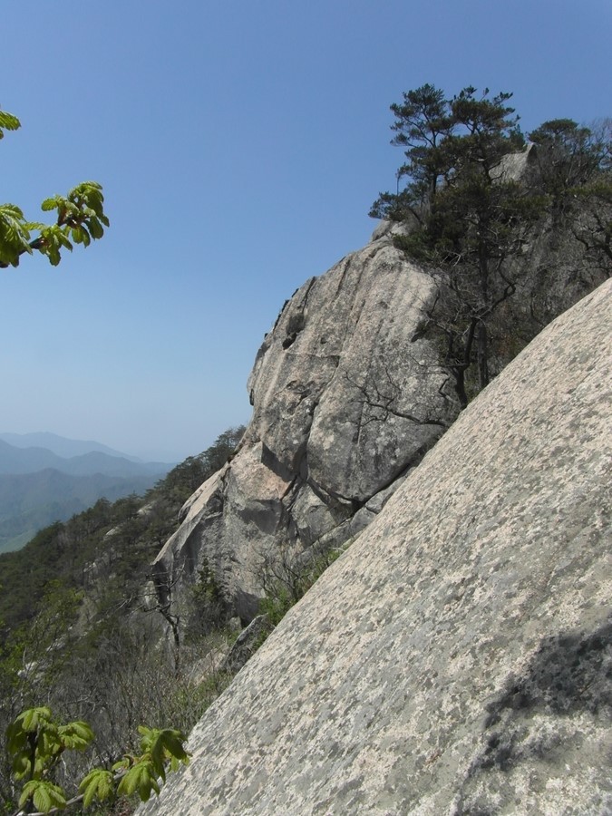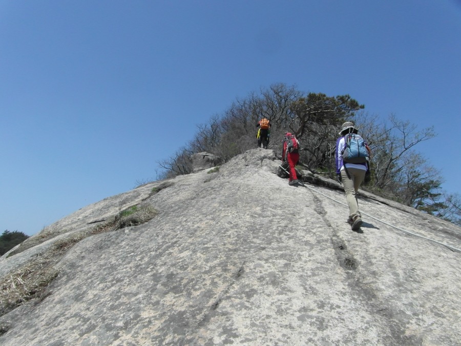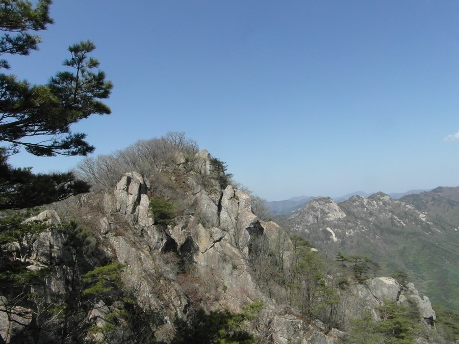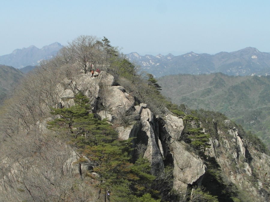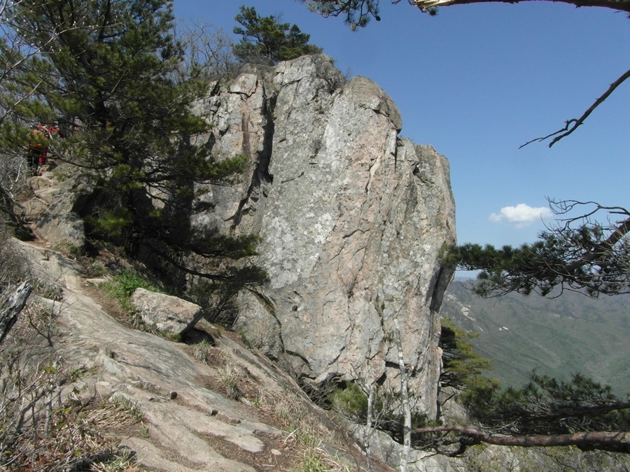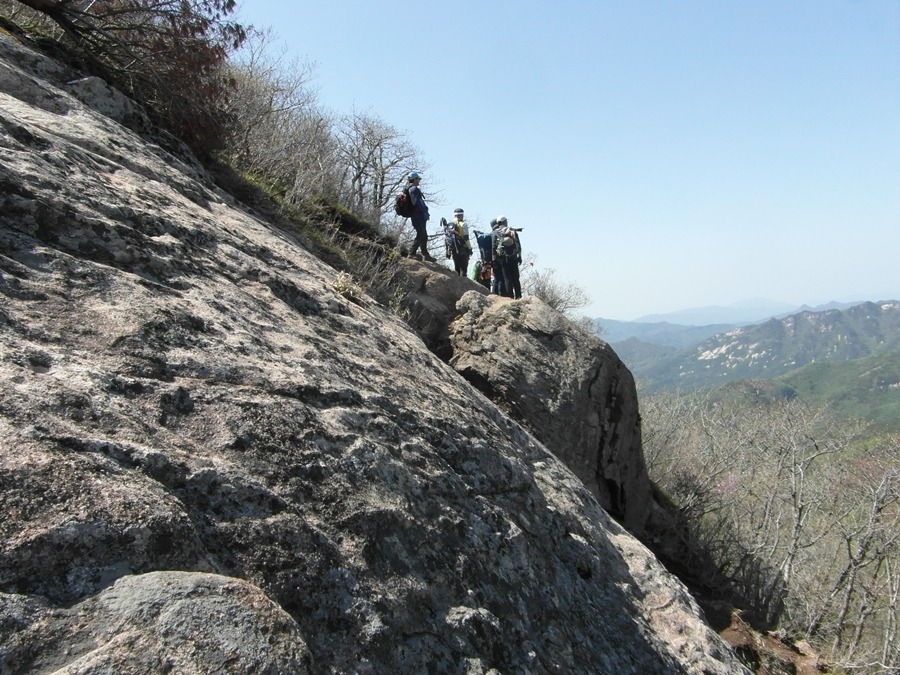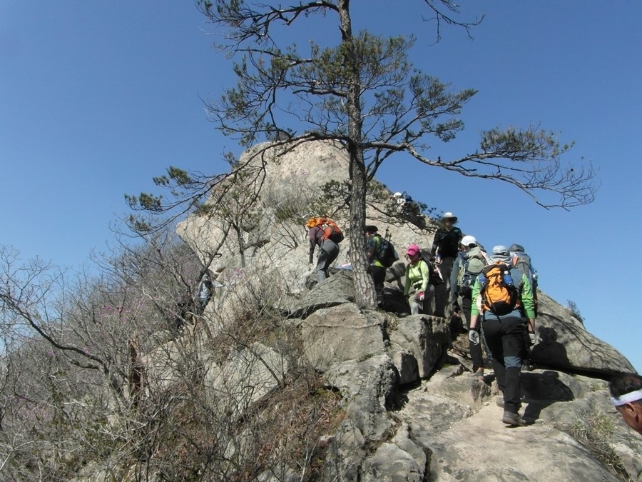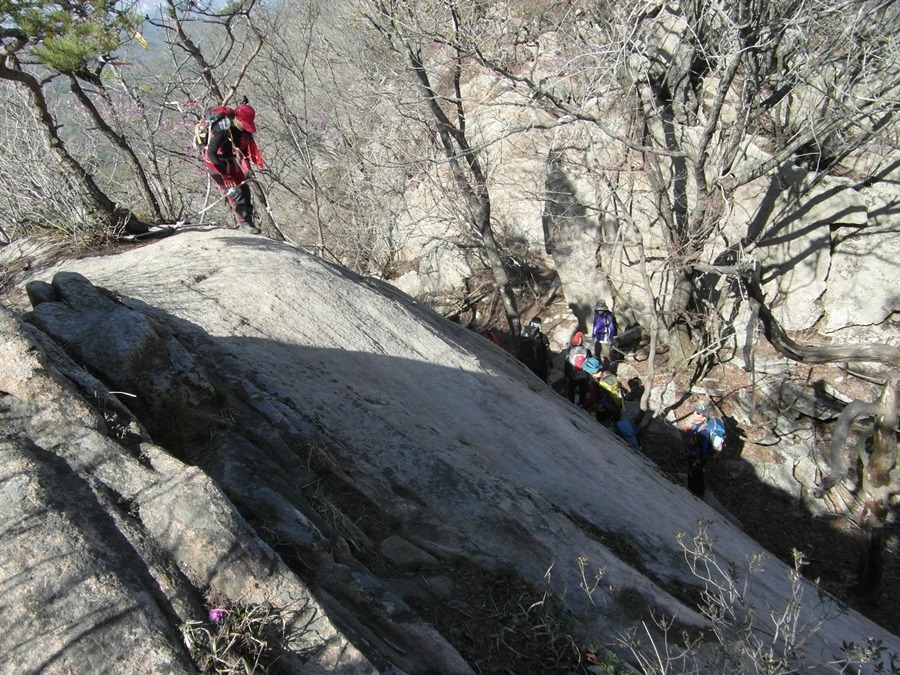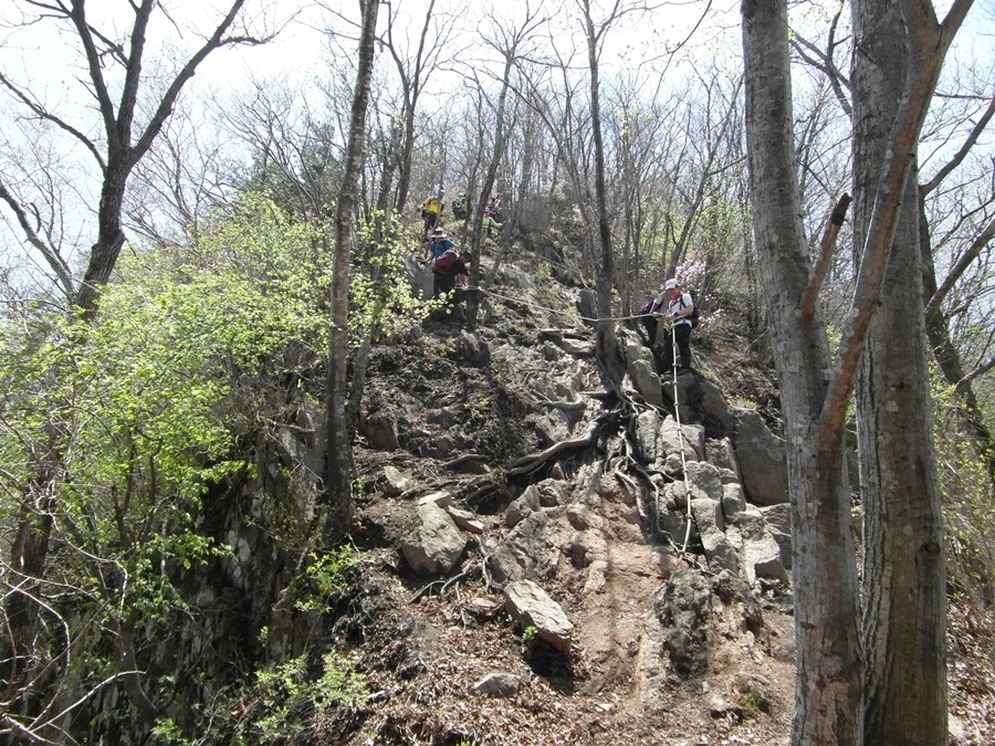 바위 사이를 어렵게 통과하면 로프를 잡고 내려서자마자 곧바로 암봉을 타고 올라야 하는 난코스의 연속이다