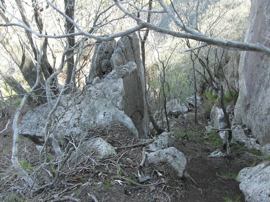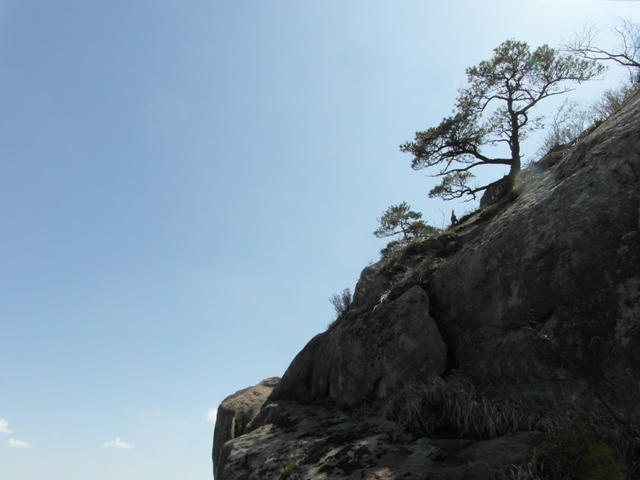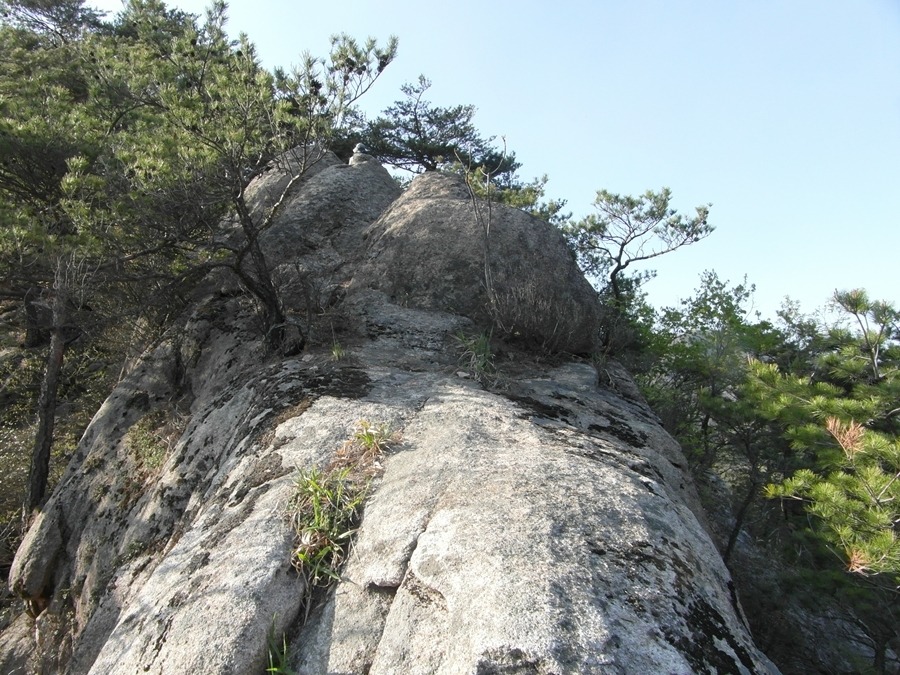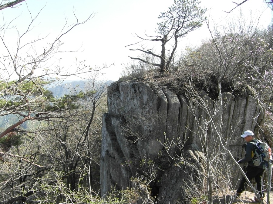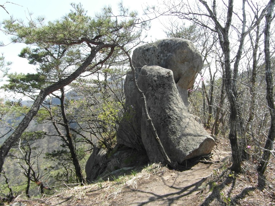 나뭇가지가 없다면 우뚝 솟은 선돌이 돋보일 텐데 다소 아쉬운 모습이다