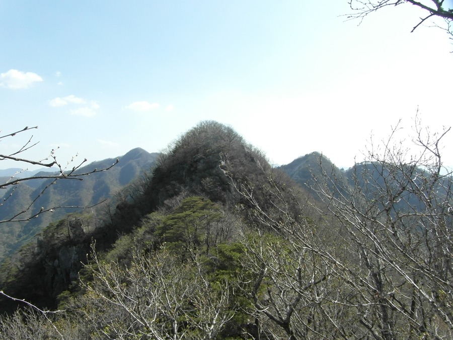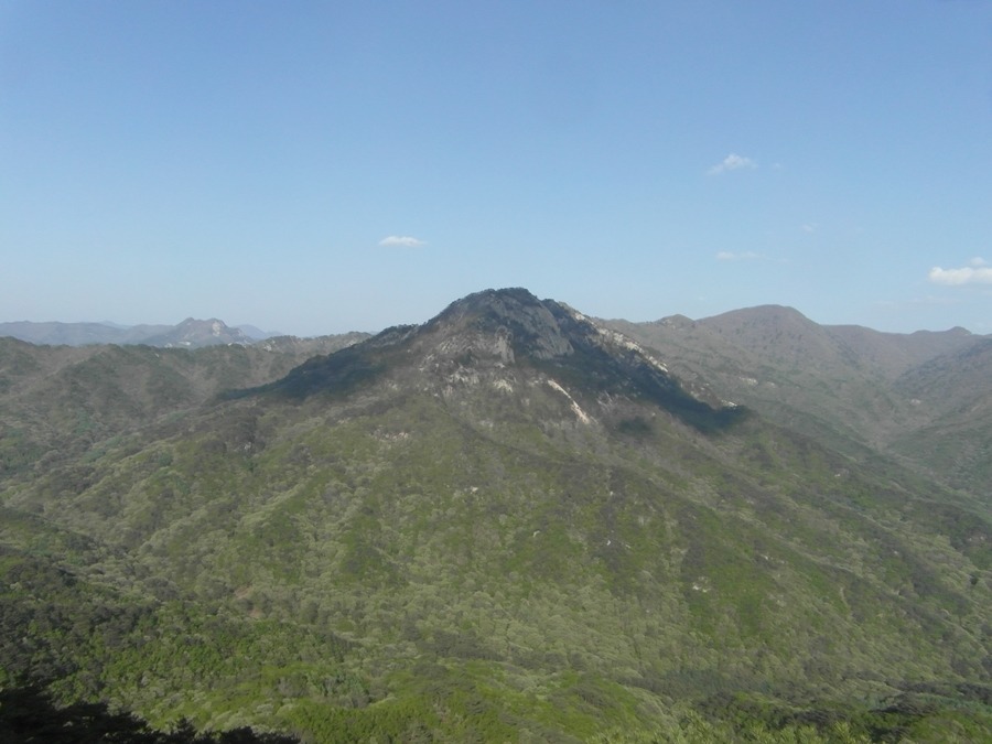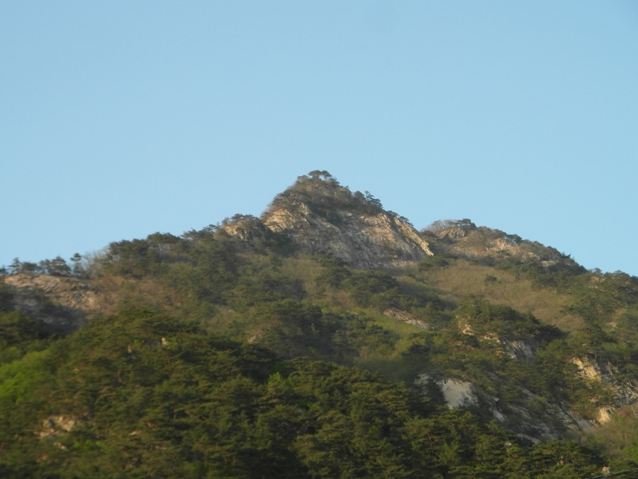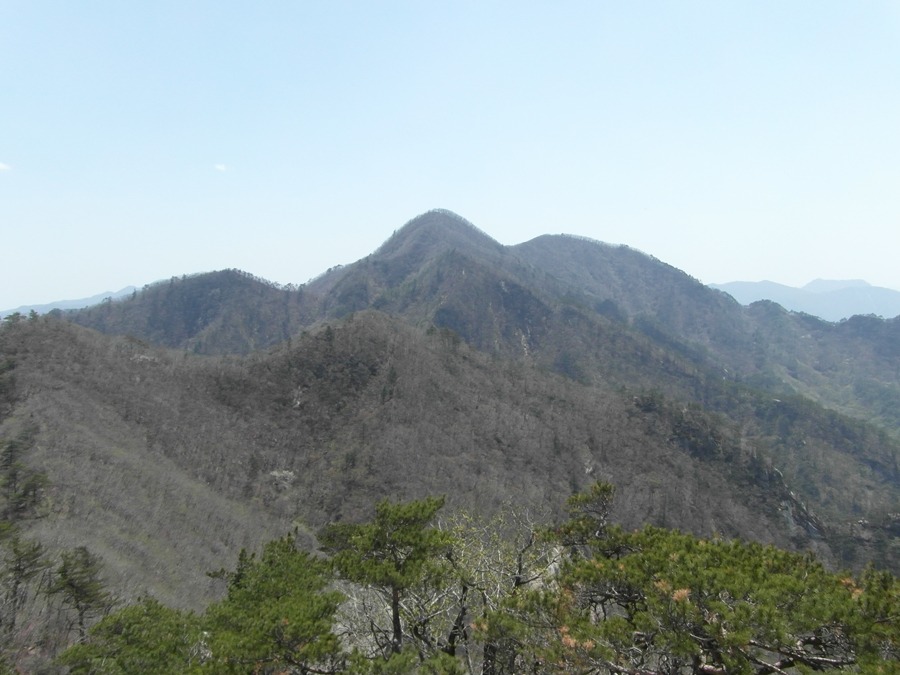 마을에서 보는 신선봉, 우리가 지나온 곳은 신선암봉(神仙巖峰)이다