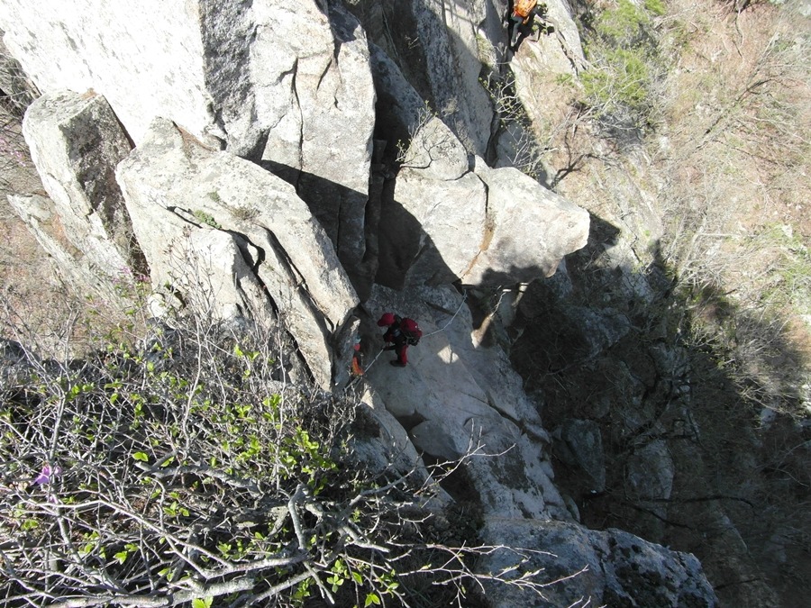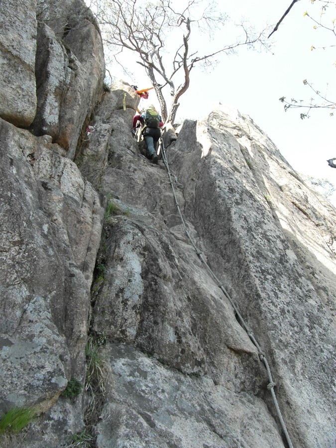 로프를 잡고 내려가는 코스라 지체되는 게 보여 난 슬랩을 타고 따로 내려가다 낙엽에 미끄러졌지만