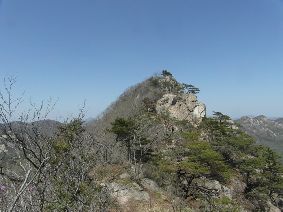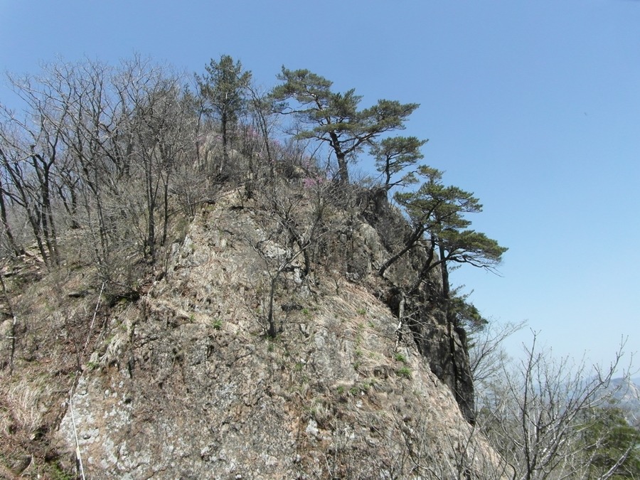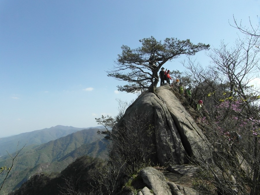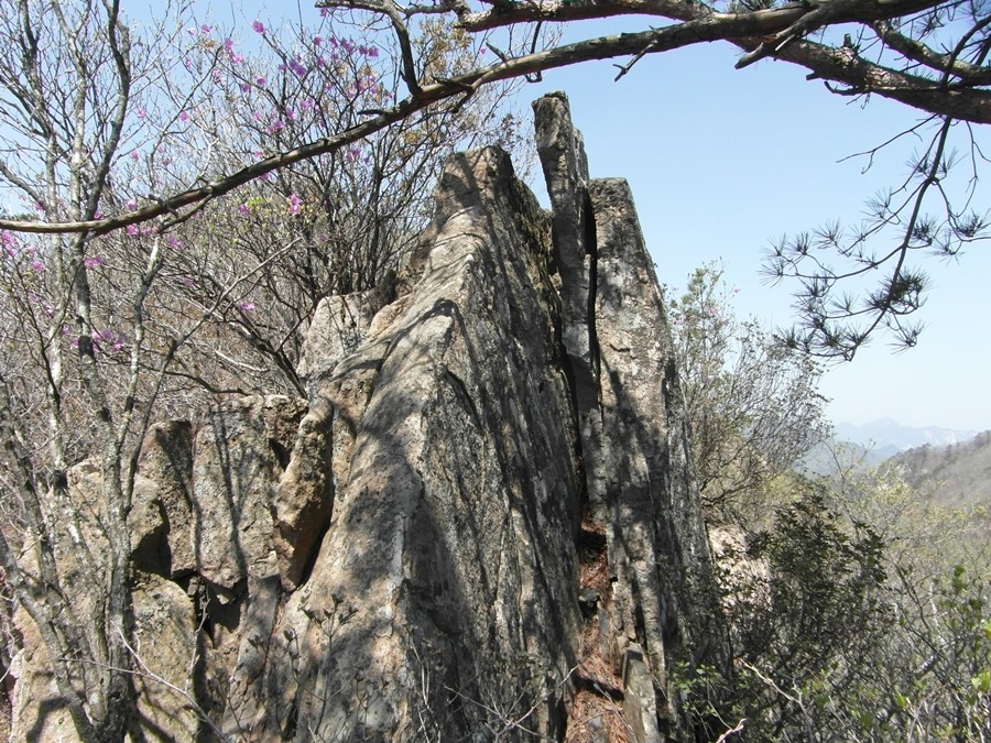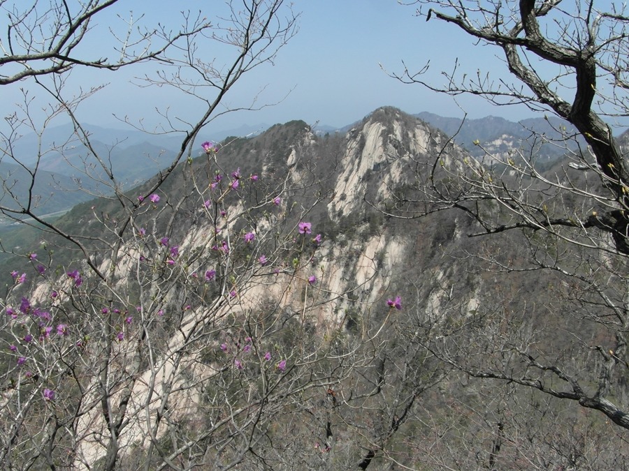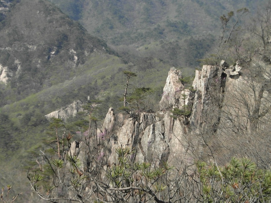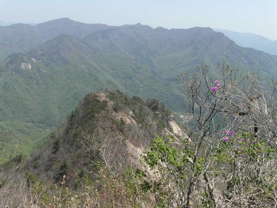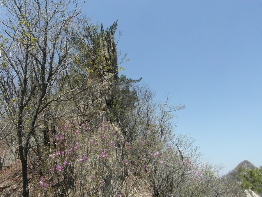 1,000m급 고지라 산정엔 때늦은 진달래가 간간히 반긴다