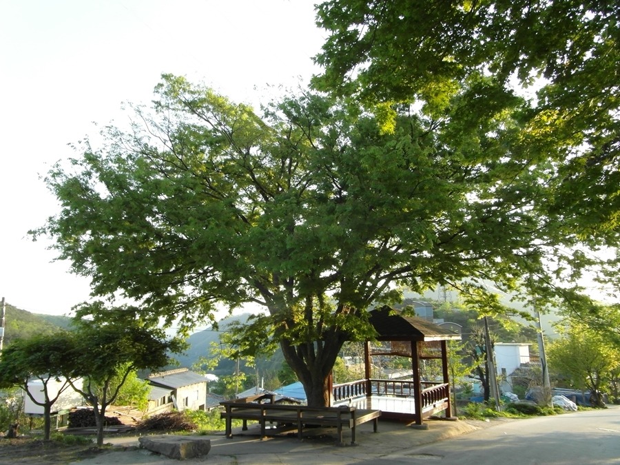 마을에 자리잡은 느티나무가 그늘을 만드니 멋지게 평상도 꾸며놓아 더위도 식히며 많은 정담이 오가겠다
