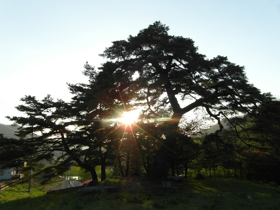 마을을 지키는 수호신인 소나무의 용트림한 자태가 멋지다
