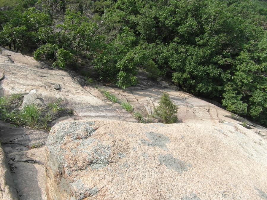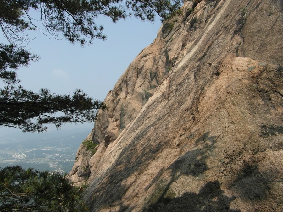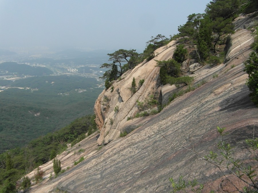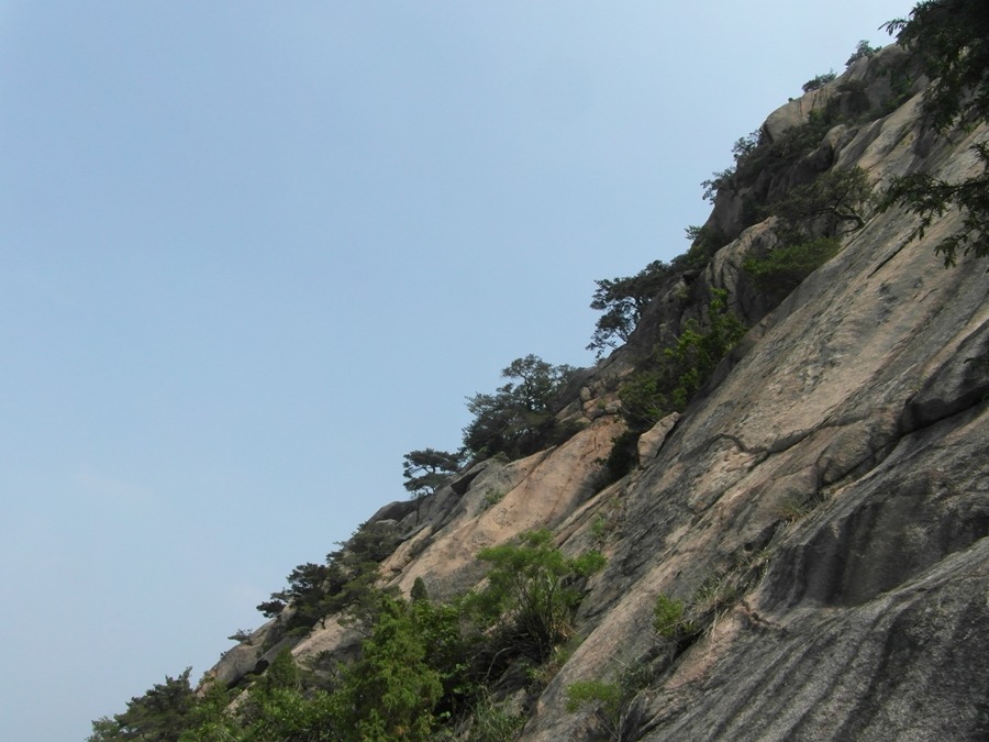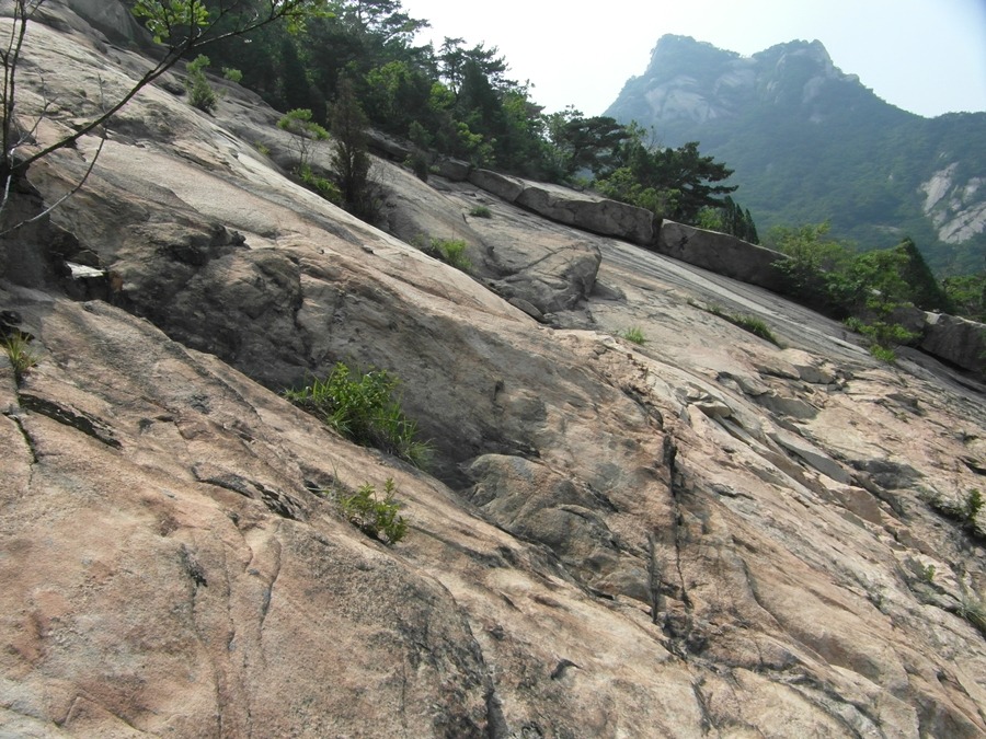 그 반대편 남쪽 사면은 슬랩과 암벽으로 이루어져 마땅히 길을 낼 수 없는 구간이라 고도의 릿지 기술이 없으면