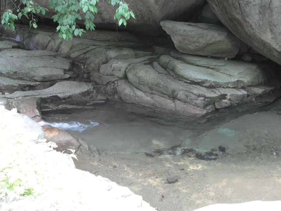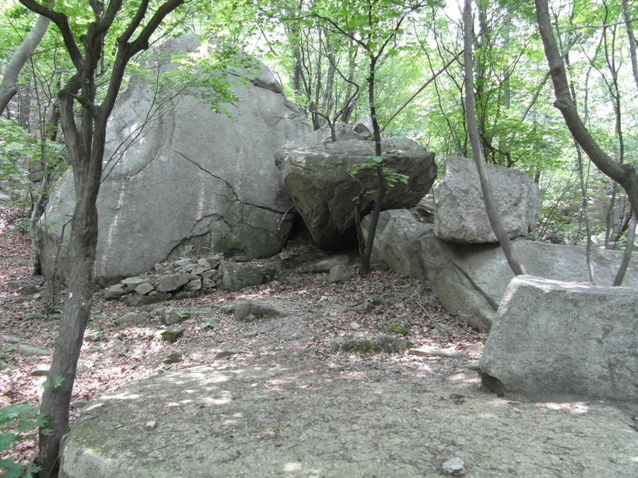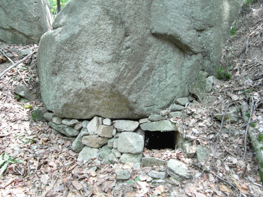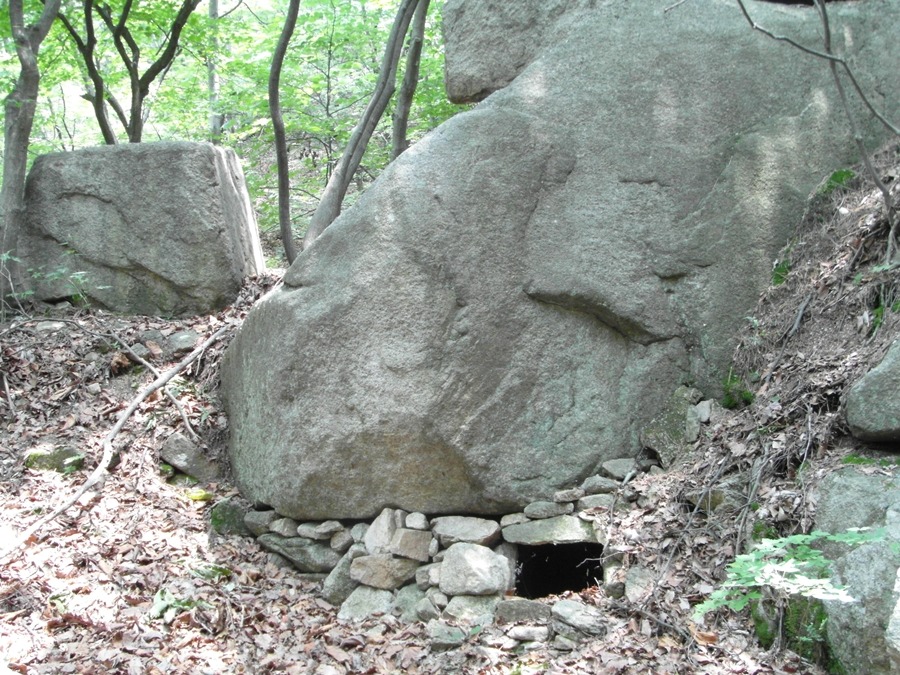 적에게 노출되지 않도록 오솔길이 이용하여 법용사 계곡으로 내려가다 만난 바위 아래쪽엔 네모난 구멍이 있어