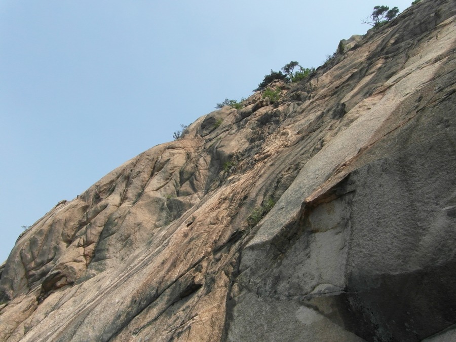 드디어 슬랩과 암벽지대를 통과하려는 데 경사도가 높거나 손을 잡을만한 홀더가 없어 애를 먹는다