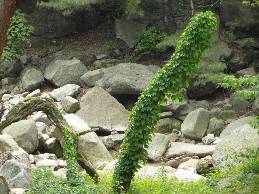 도깨비 방망이 같은 나무줄기를 담쟁이 풀이 먹어 삼키고 있다