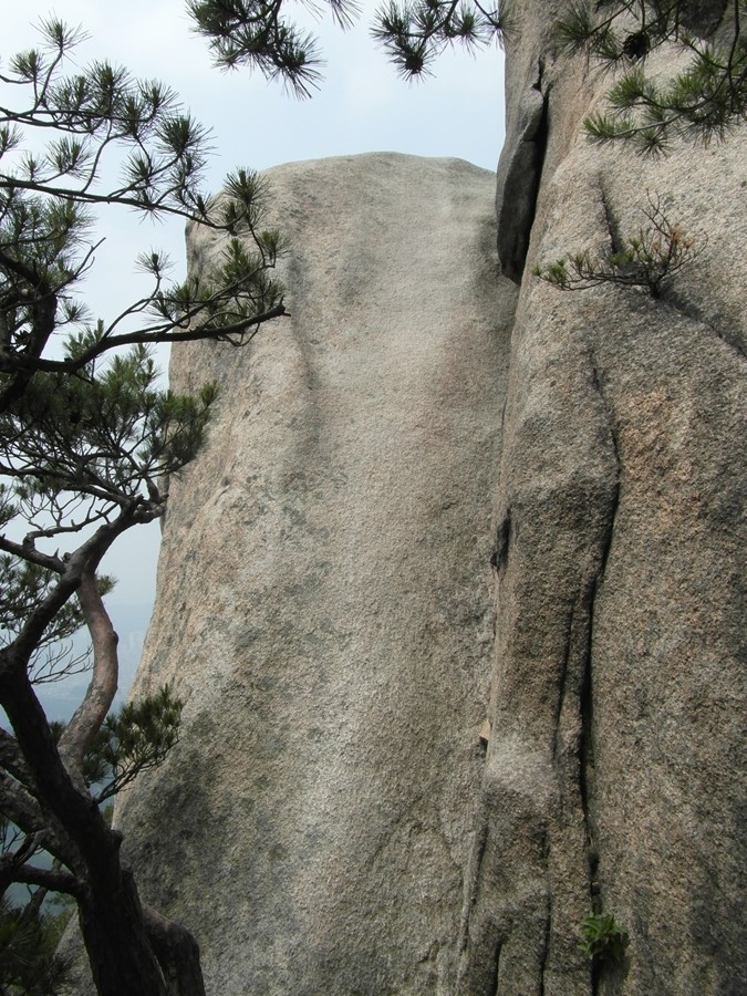 이곳은 자일을 걸지 않고는 오를 수 없는 구역이라 릿지로만 갈 수 있는 루트를 찾아야 한다
