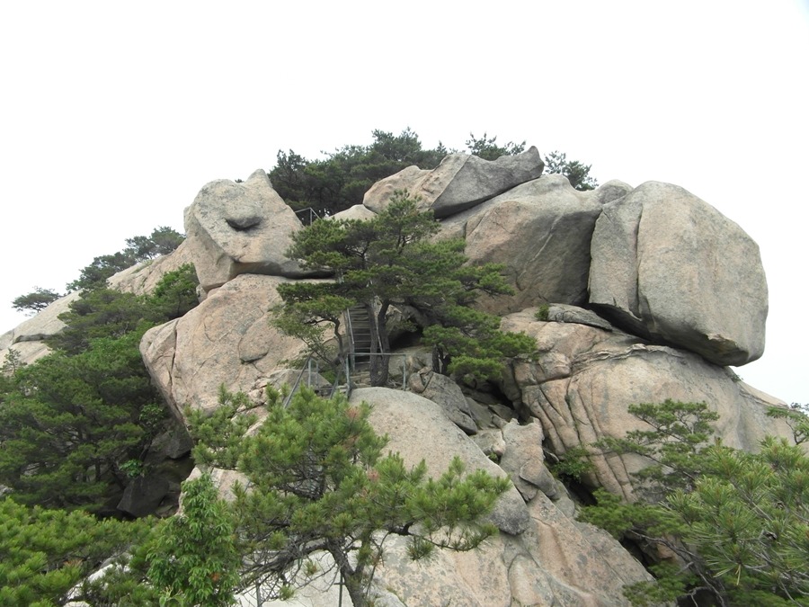 웬걸 이곳으로 겨우 오를 공간이 있다. 하지만 오르는 길도 만만치 않아 위태롭게 바위에 오르고나니 드디어 의상봉이 나타난다.