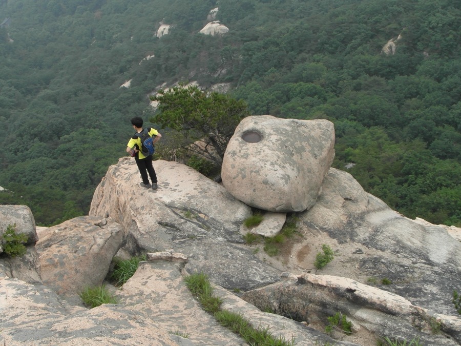 밀면 뒤로 굴러떨어질 거 같은 바위