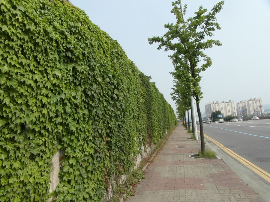 석수역 방향에서 버스승차장으로 가는 길에 보는 당쟁이풀이 시멘트벽을 완전히 휘감은 모습이 매우 인상적이다.