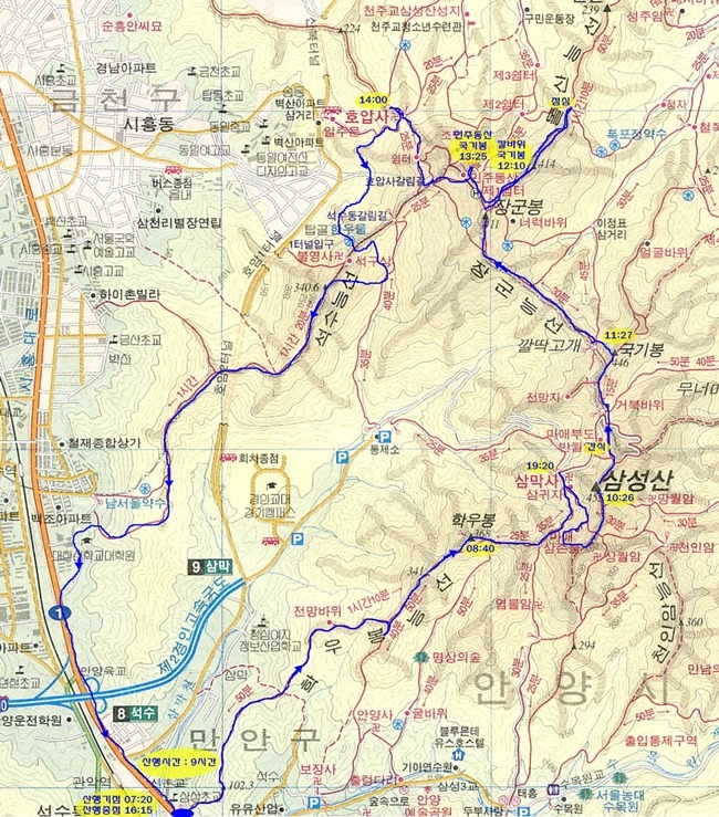 아홉 시간 만에 삼성산을 종주하고 삼막사와 호압사까지 둘러보았지만,