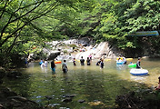 한쪽은 장마의 폭우로 산사태로 도로가 유실되는 등 난리도 아닌 데, 장마는 칠보산을 비켜간건지 계곡에 수량은 많지 않다