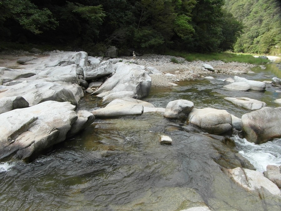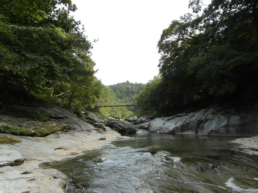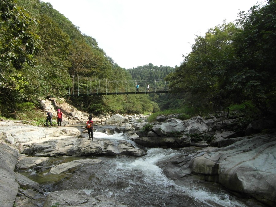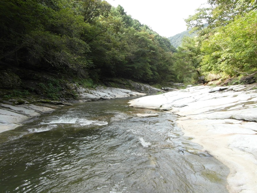 수타계곡은 암반 위를 잔잔히 흐르는 곳이 있는가 하면, 바위 사이를 격랑을 만들며 헤쳐나가는 물줄기가 있기도 하고 넓게 퍼