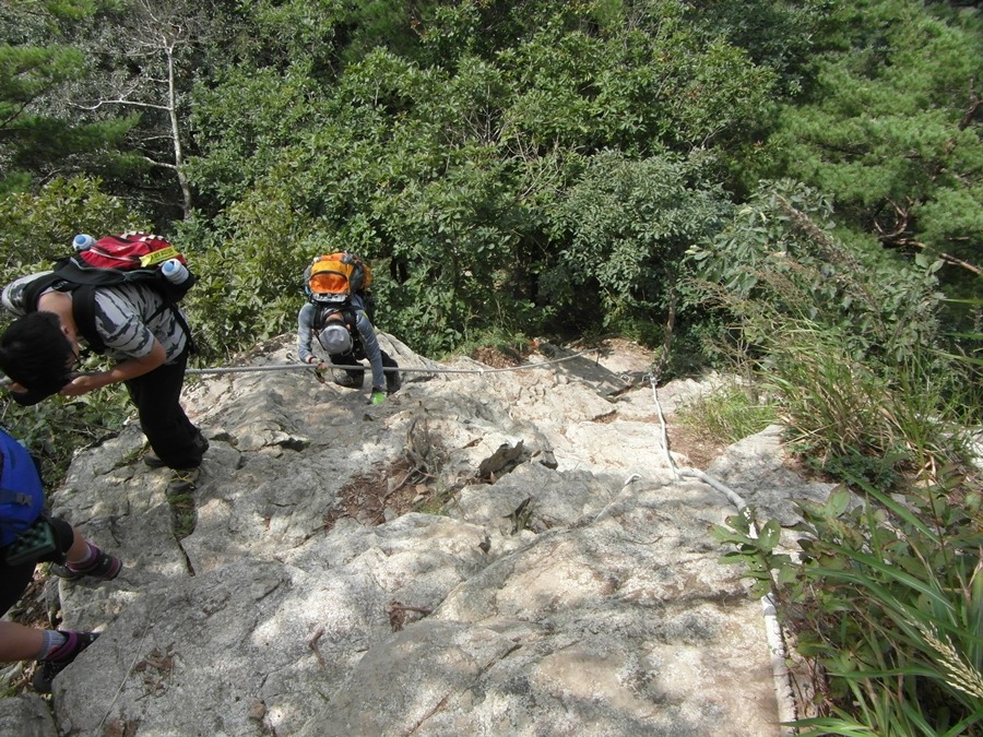 을 가려면 어느 순간 험로가 앞을 가로막아 적당히 우회를 해야 한다. 하지만 암봉이나 험로를 만났을 때 우회로가 너무 멀거