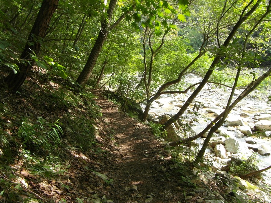 양쪽 계곡위를 따라 등산로가 있었지만 이 두 개의 활로를 버리고 계곡으로 들어섰다. 계곡엔 길이 없어 수많은 수풀을 헤치거