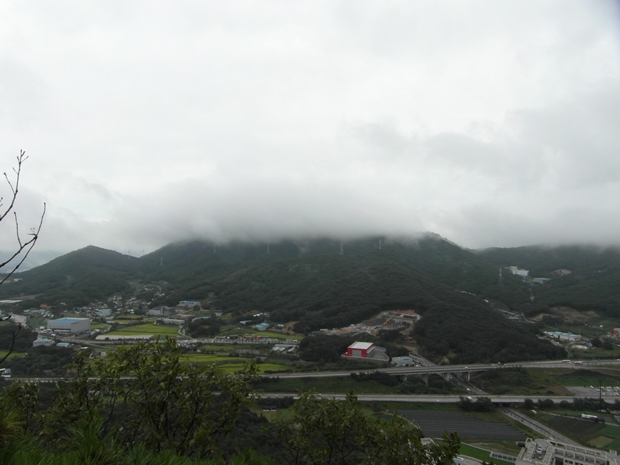 건너편 산 정상은 안개구름이 집어 삼키고...