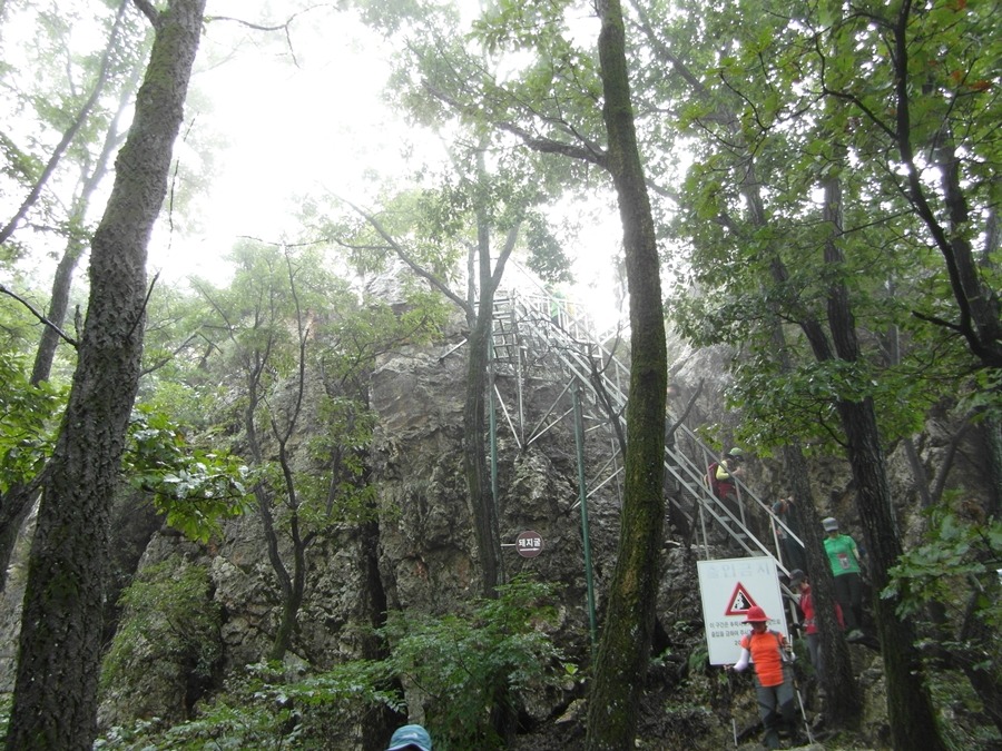 좀 전에 오봉을 내려다 보며 찍었던 암봉이 위험하여 막아놓았다