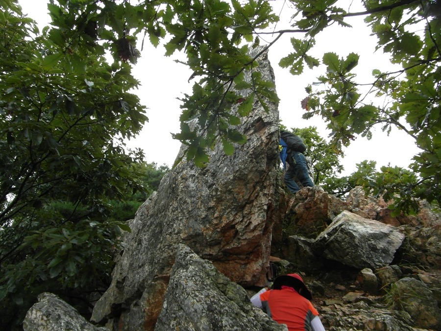 이 암봉을 빠져 나가야 제1봉 표지석을 볼 수 있다