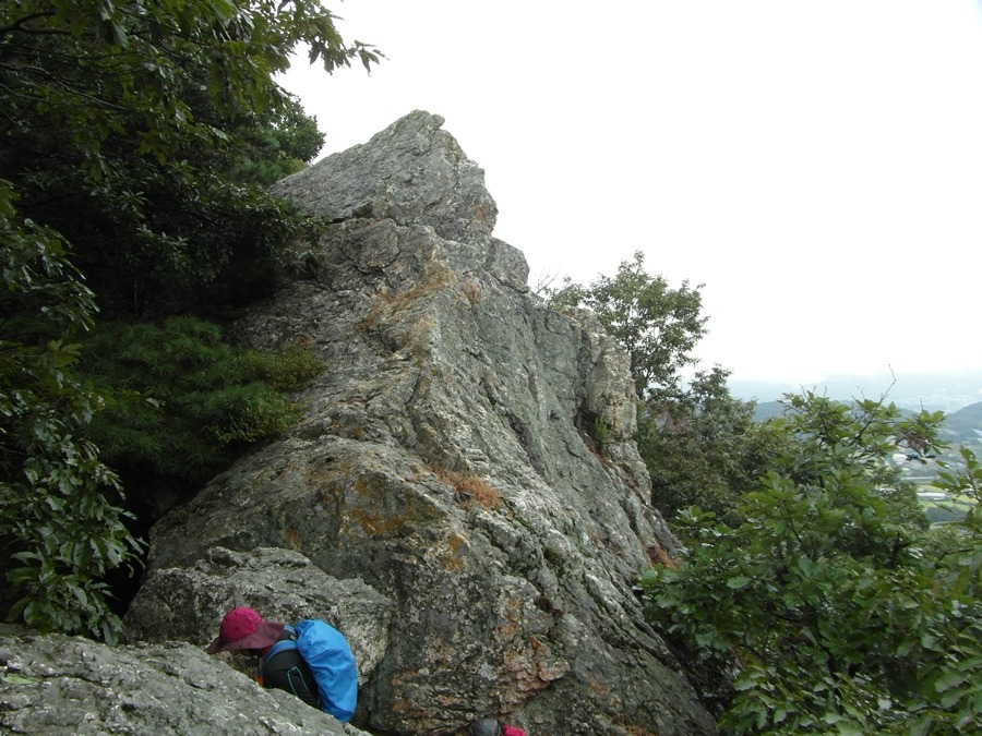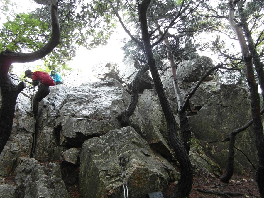 바퀴나 돌아 올라가야 하지만, 암봉이 스릴 있게 보여 무작정 타고 올라 시간을 단축했다.