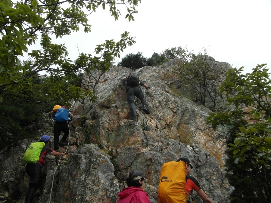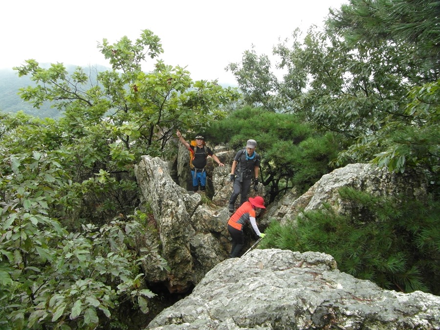봉을 기어오르고 넘어야 한다. 그 시간이야 두어 시간도 안 되는 짧은 시간이라지만 우회하지 않고 암봉을 타고 오른다면 사방으