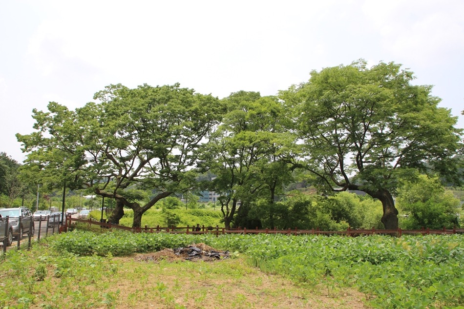 차량회수를 위해 둘레길을 따라 올라가며 보는 보호수인 느티나무 군락