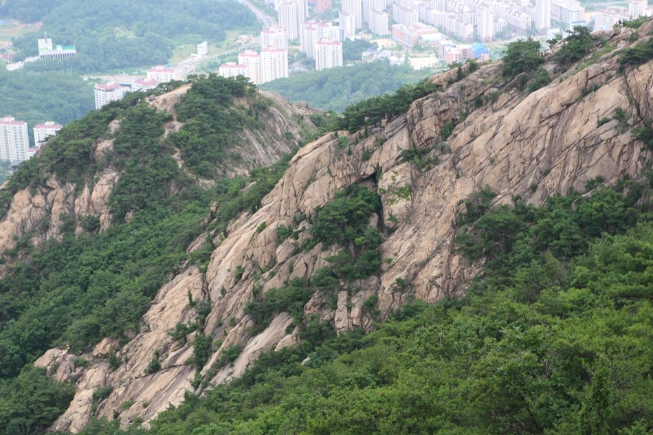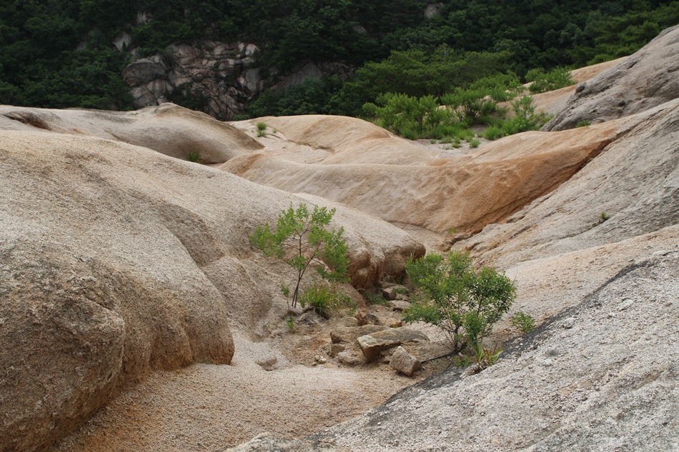 기자촌은선 중간지점에 있는 대머리바위엔 굴곡이 진 작은 협곡이 생기고 있다
