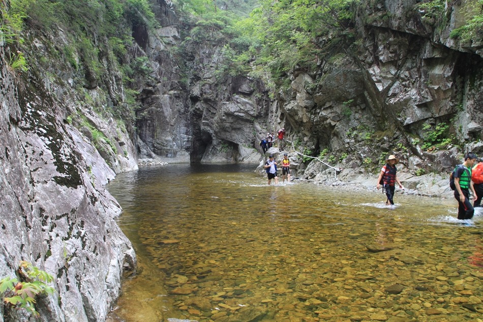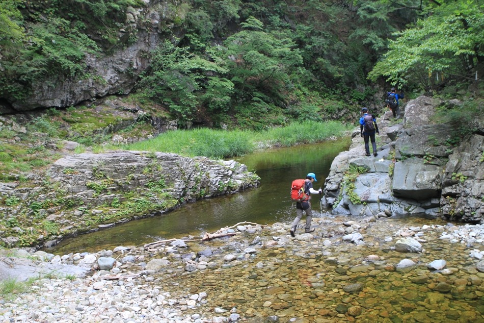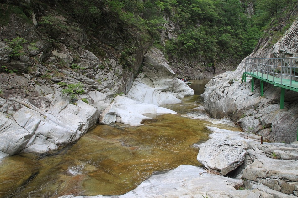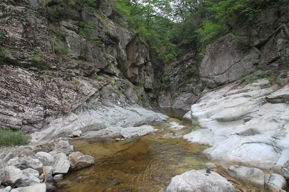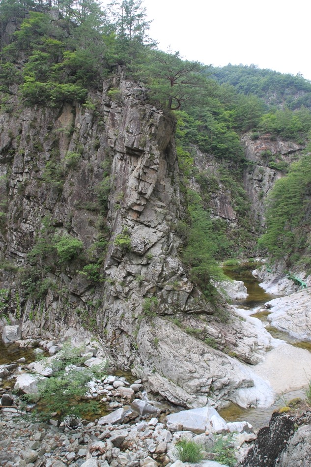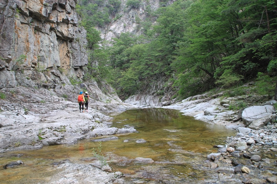 계곡이 꽉막힌듯 보이는 이곳은 덕풍계곡의 가장 위험스런 협곡이다.