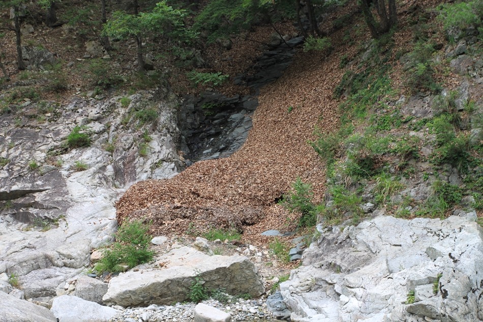 이곳은 참나무가 얼마나 많은지 낙엽사태가 일어난 모습까지도 볼 수 있다.