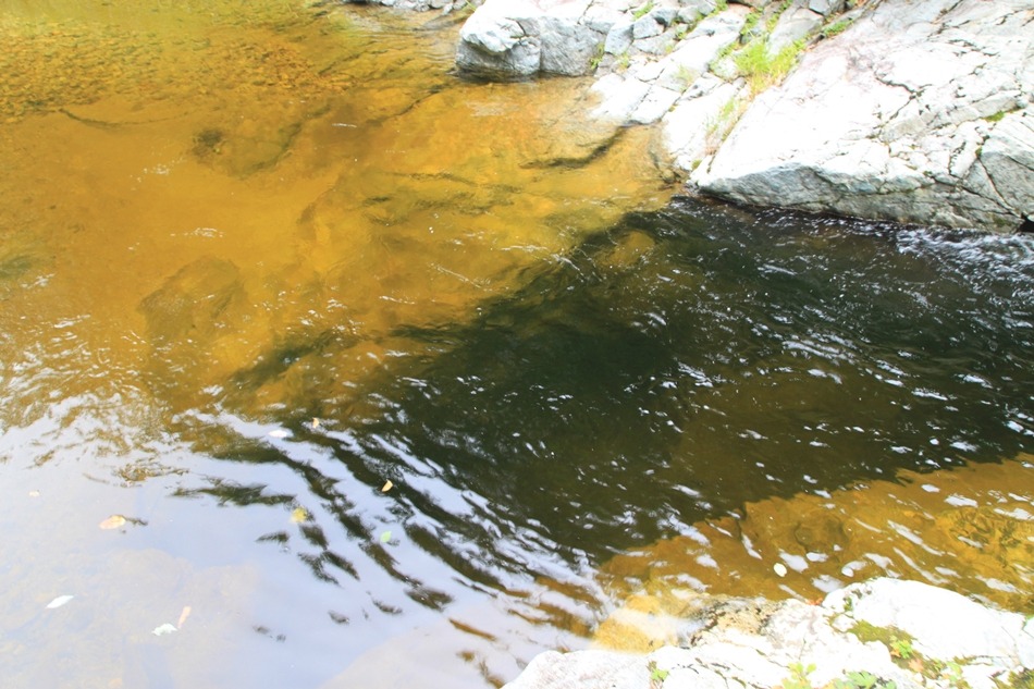 깊은 곳은 암갈색이거나 흑색에 가깝고 적당히 얕은 곳은 연갈색에서 금빛 찬란한 모습까지 다양한 색상에 즐거웠다.