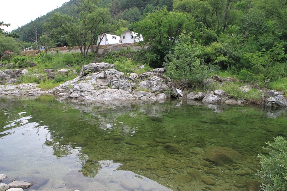주차장 입구엔 제법 많아 보이는 물길이 한여름 피서객을 끌어 모으기가 좋아 보인다.