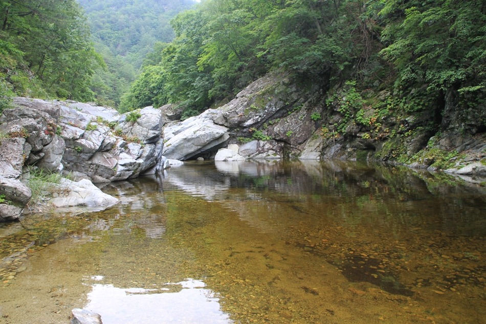덕풍계곡은 가물어도 늘 이 정도의 수량을 보여주니 어느 때 방문하더라도 계곡의 신비에 빠져들기에 충분하다.