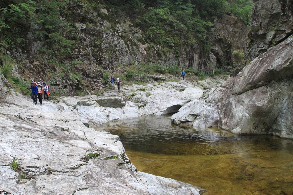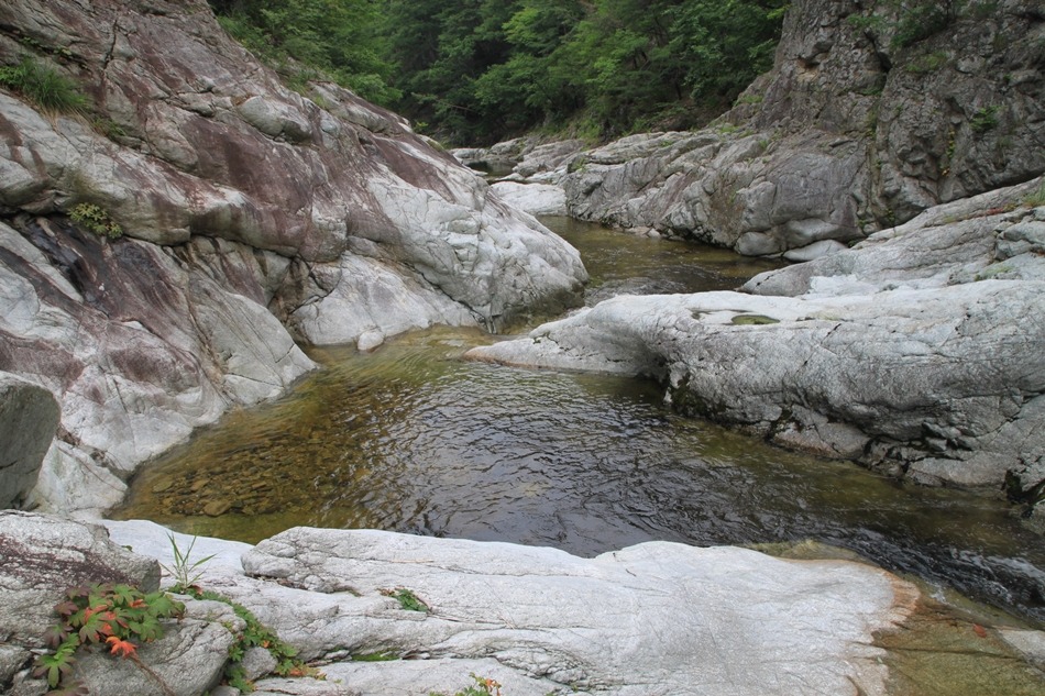 덕풍계곡은 계곡이 거의 전부 암반이라 할 만큼 암반계곡이 인상적이었다.
