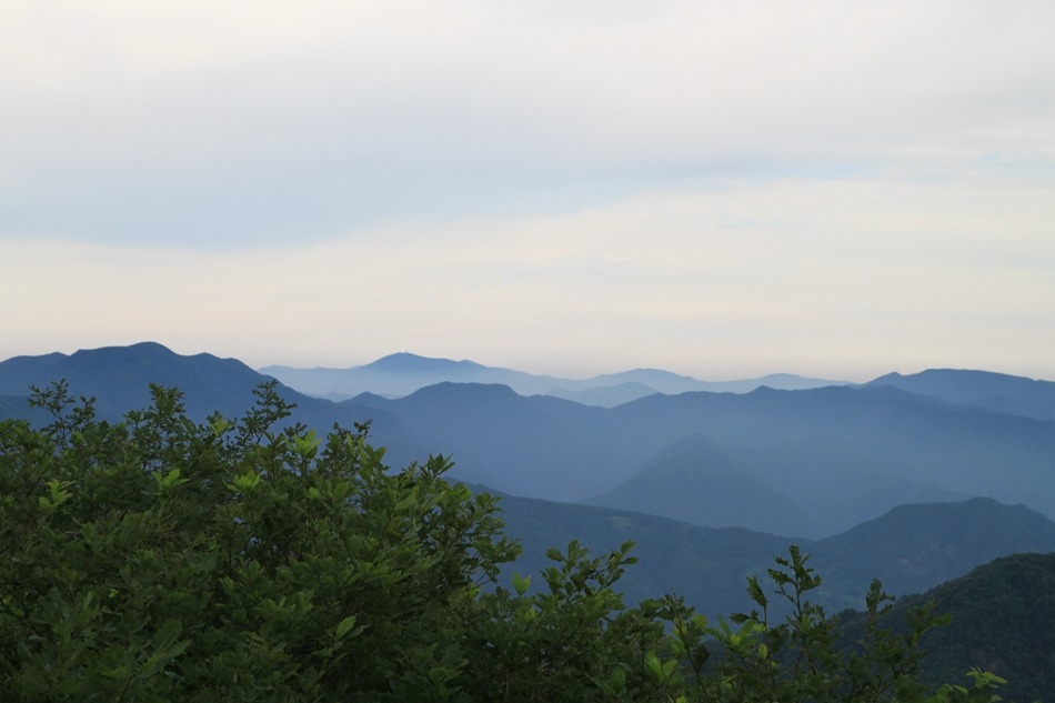 정상에선 멀리 동해바다가 보이지만 오늘은 날씨가 흐려 선명하지 않아 다소 아쉽다.