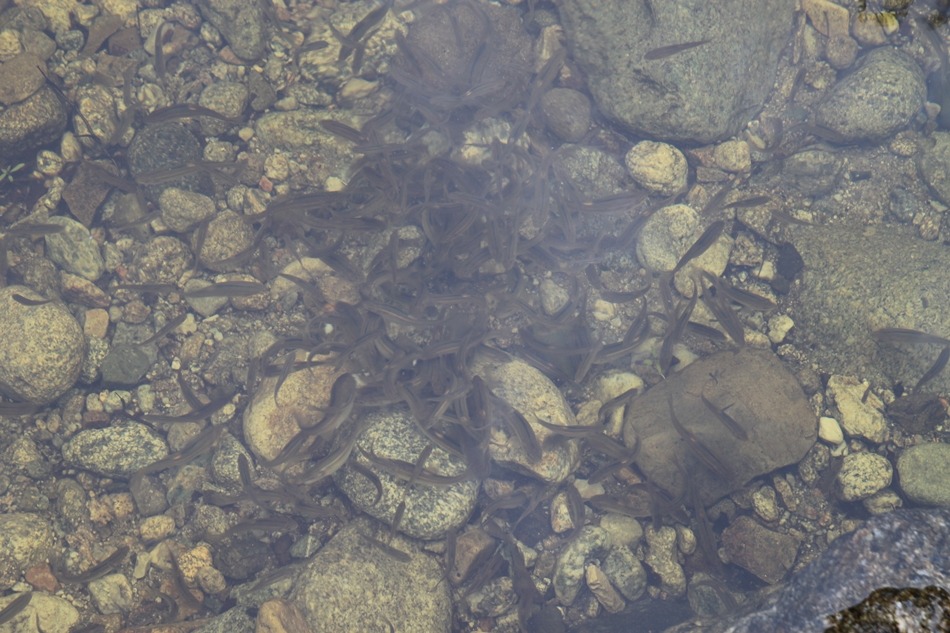일급수에만 자라는 물고기일 텐데 모모대장님이 떡을 잘라주자 "이게 웬떡이냐?"며 달려드는 물기기가 물보다 많다.