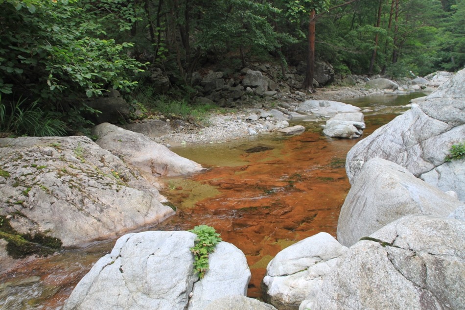 덕풍산장을 지나면서부터 황갈색 물색은 어느새 푸른색으로 바뀌는 신비로움을 또 한 번 보여준다.