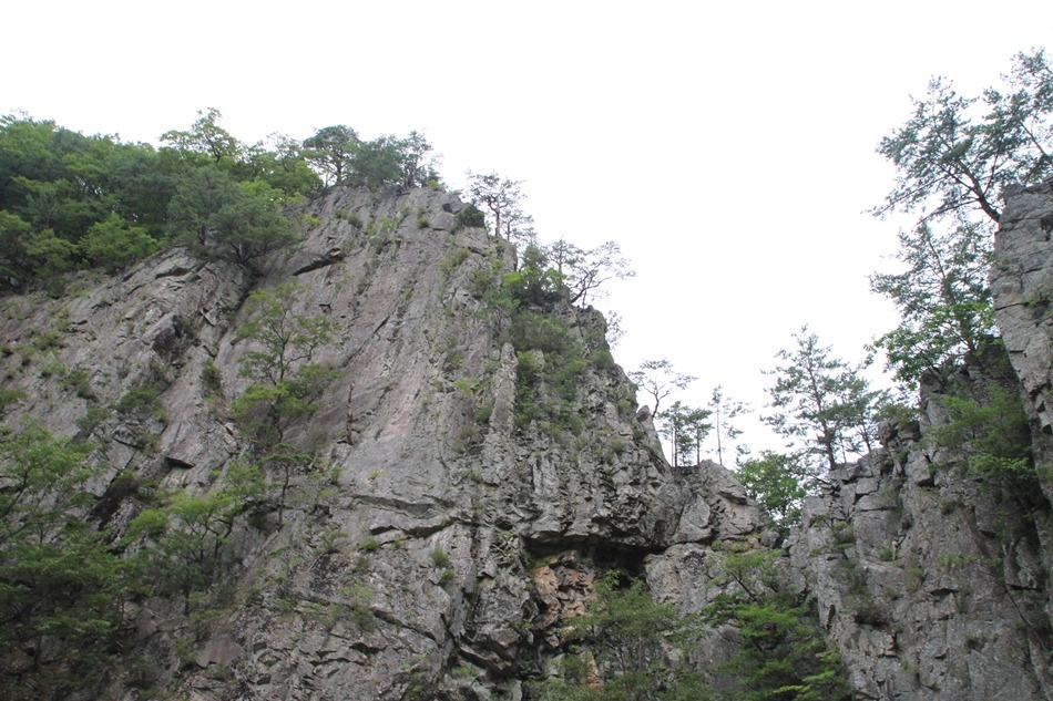 계곡이 꽉막힌듯 보이는 이곳은 덕풍계곡의 가장 위험스런 협곡이다.