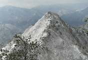 20-30분을 오르면 첫 번째 쉼터에서 겨우 저 암봉을 조망하는 행운을 만난다.