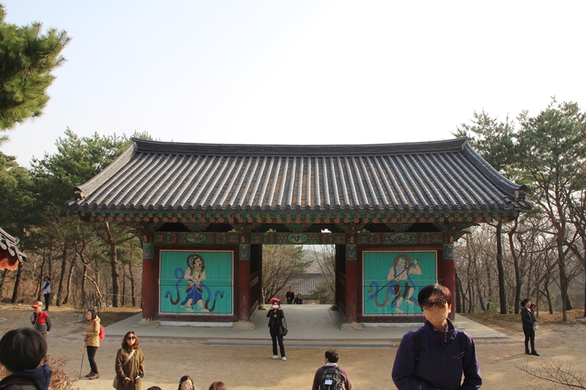 통과하는 양쪽에 사천왕을 조각해 놓은 것은 입체감이 있지만 평면적인 그림이 더 좋다.